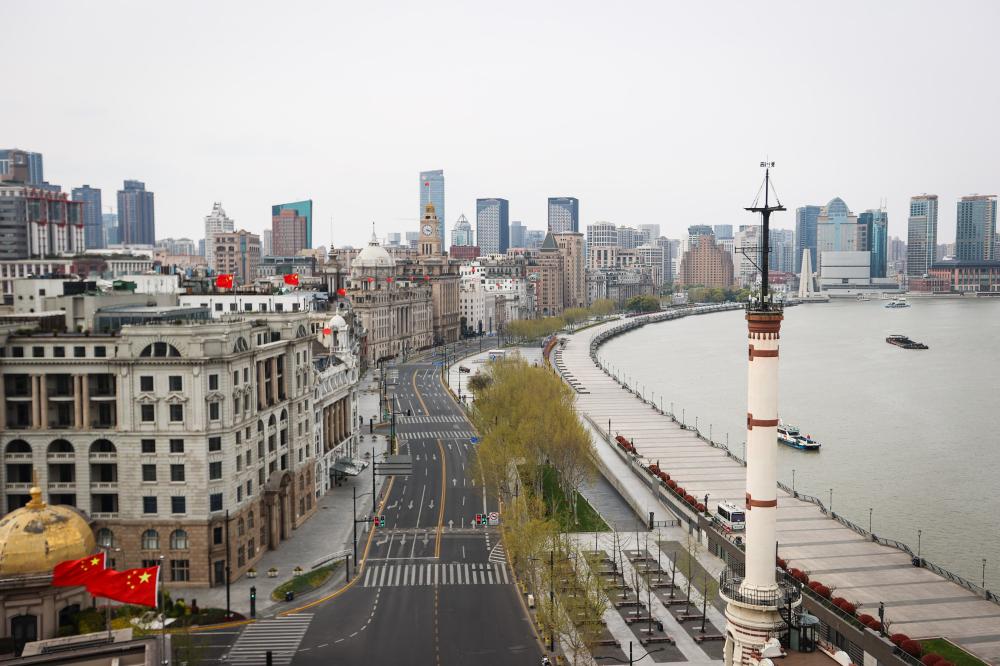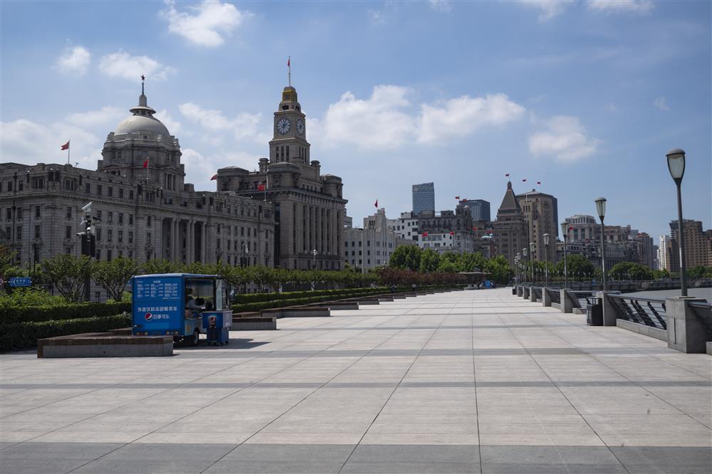 2022年4月1日,外滩,马路上仅有工作车辆来回行驶 海沙尔 摄