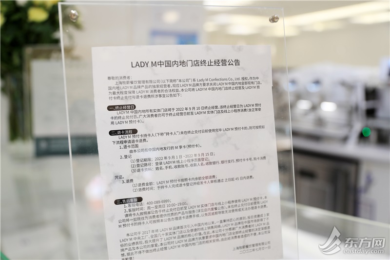 昨天,中国内地LADY M品牌产品经营方上海牧薪餐饮管理有限公司发布公告:“LADY M中国内地所有实体门店将于2022年9月10日终止经营,该终止经营日为LADY M预付卡的终止兑换日。”