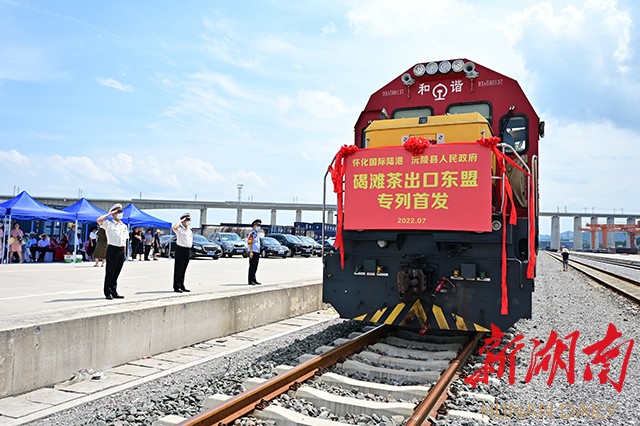 当天,一列满载沅陵碣滩茶叶的“怀化——北部湾港”铁海联运班列从怀化国际陆港鸣笛发运,奔向广阔的东盟市场。这是湖南省首趟茶叶货运专列。