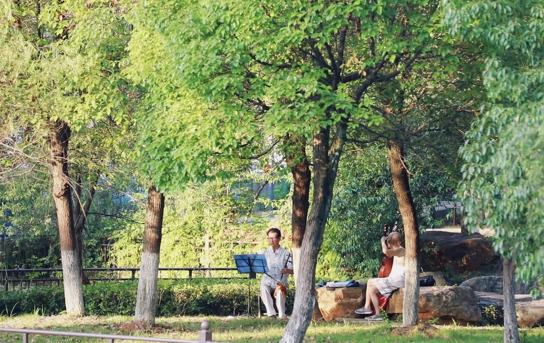 在九老峰公园的丙穴洞口,这里凉风习习、清泉泠冽、景色怡人。在夏季,这里格外清凉,男女老少纷纷前来唱唱歌、跳跳舞、拉拉琴,聊聊坐坐、走走停停,将酷暑的燥热消解在这悠闲的避暑小憩里。