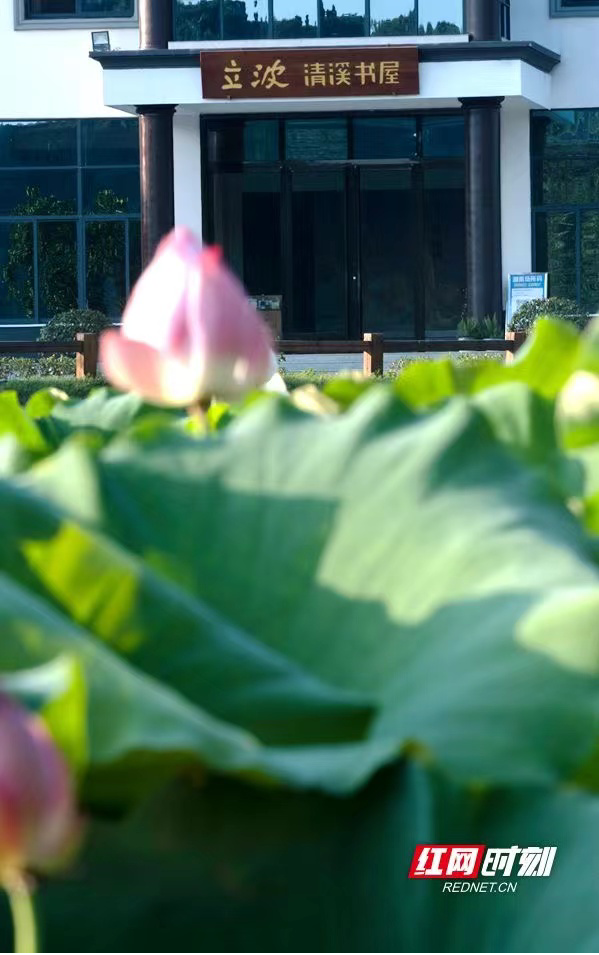 ▲ 荷花池畔,新建的立波清溪书屋。(摄影 张必闻)
