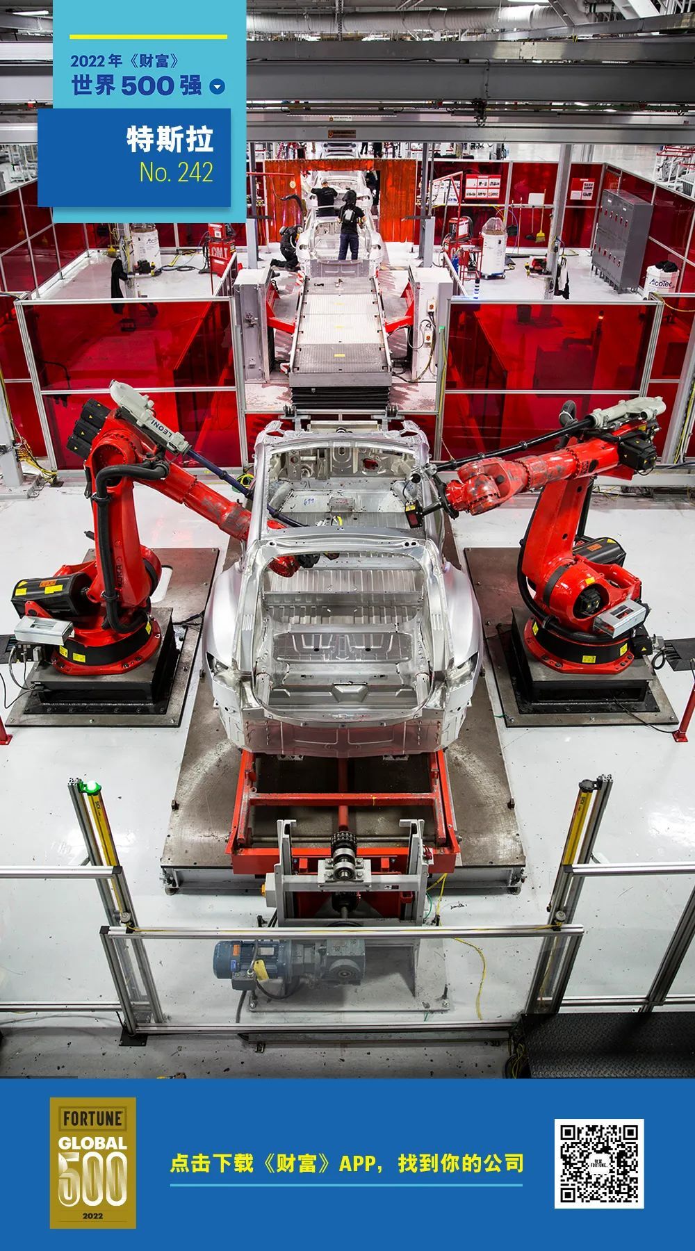 特斯拉第二次登上该榜单,今年排名跃升150位至第242位。2021年,该公司营收大涨71%。