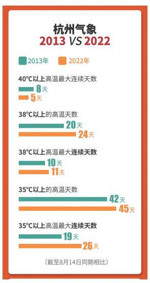 目前,今年的极端最高气温,杭州、金华、温州、台州、丽水已经打破2013年纪录。40℃以上的高温天数,温州、金华、丽水已经打破2013年纪录。