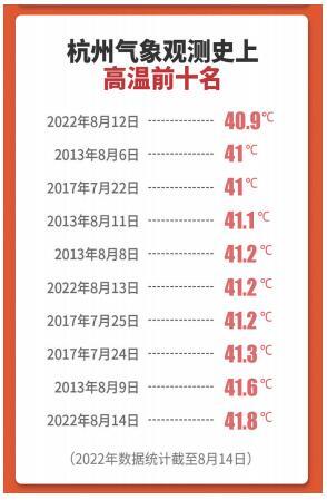 昨天15:04,杭州的气温达到了41.8℃,超越2013年41.6℃的纪录,成为自1951年杭州站有连续气象观测记录以来的最高气温历史极值。