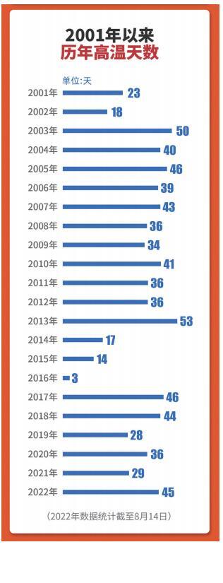 再来看一下2001年以来历年高温天数。