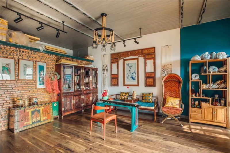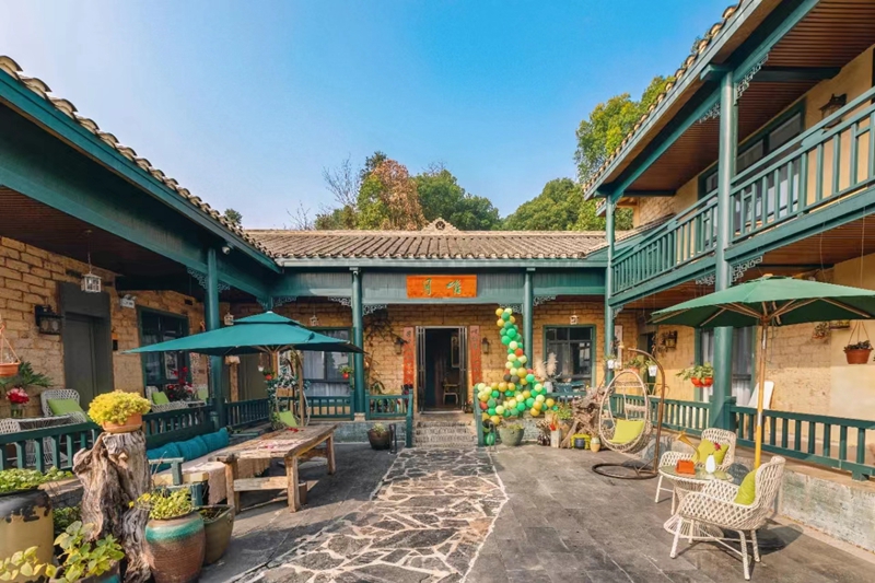民宿色彩搭配饱和、明艳,充满轻奢复古的气息。而花园庭院、画室、古琴、茶室、艺术展厅,处处彰显浓郁的艺术氛围。庭院四季花开,别有一番风情,与三五好友来此喝茶聊天,畅谈人生是一种享受。
