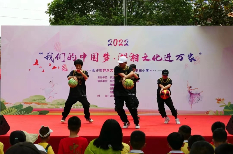 长沙市群众文艺轻骑队走进丰田小学。长沙市群众艺术馆供图