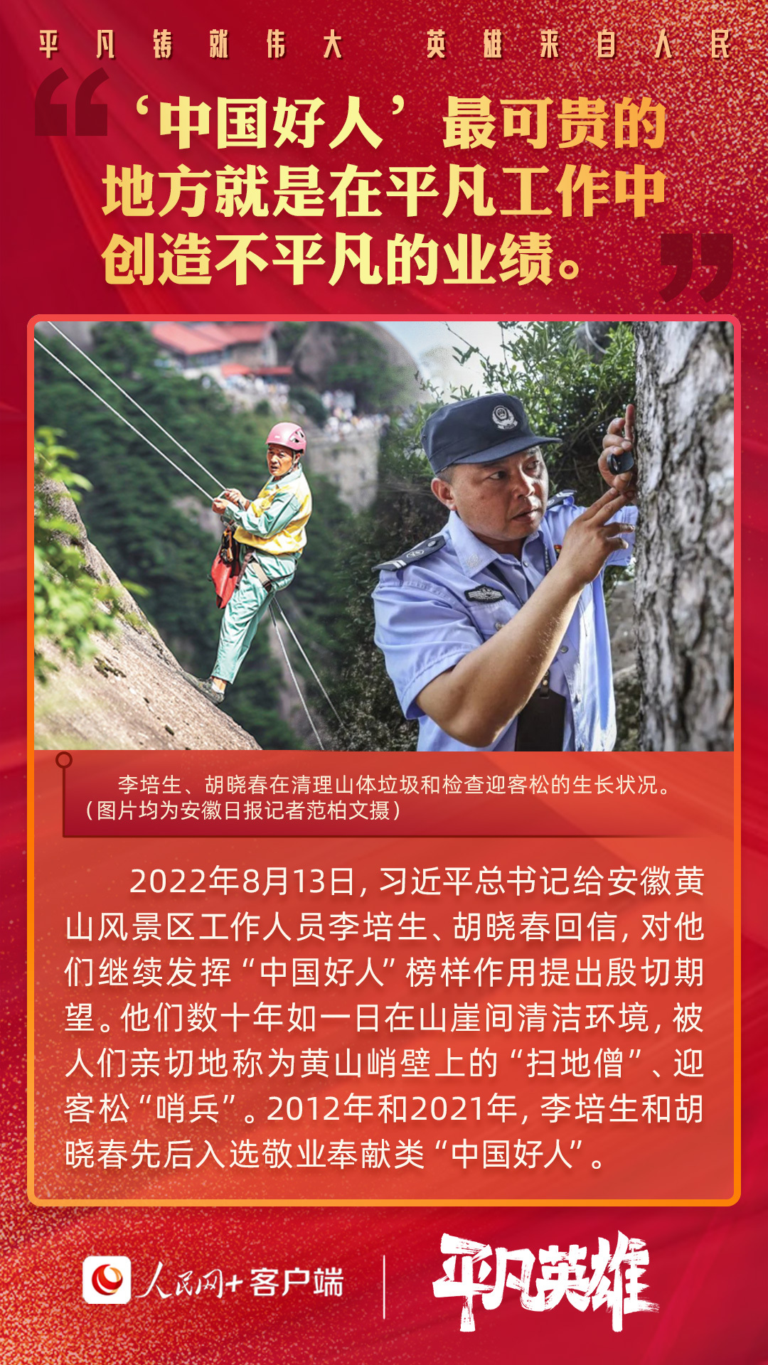 “人民网+”客户端为您梳理了十八大以来习近平总书记与平凡英雄的故事,让我们一起感受平凡中的伟大。