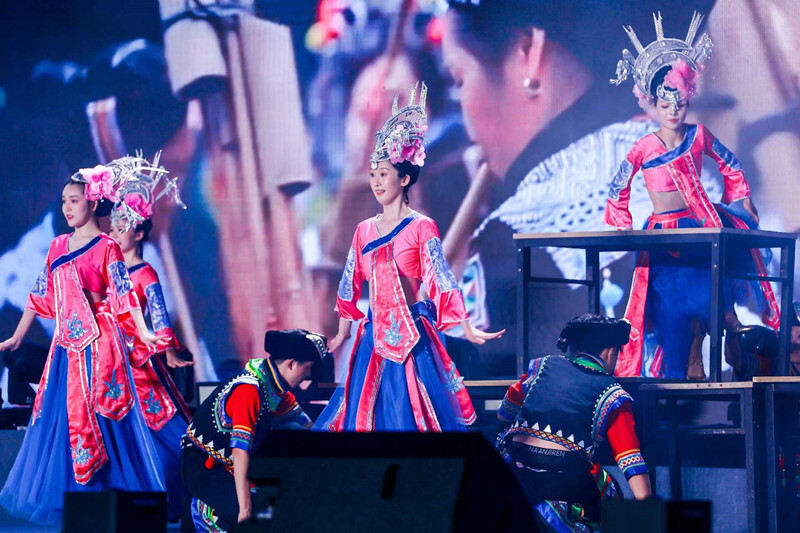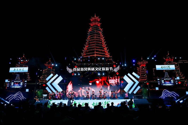 晚会由《光影千年》现场全息灯光秀及水幕表演秀开场,开场舞整体舞美将鼓楼融为一体,绚烂的3D灯光投影呈现出海市蜃楼一般的景象,闪耀侗乡夜空。