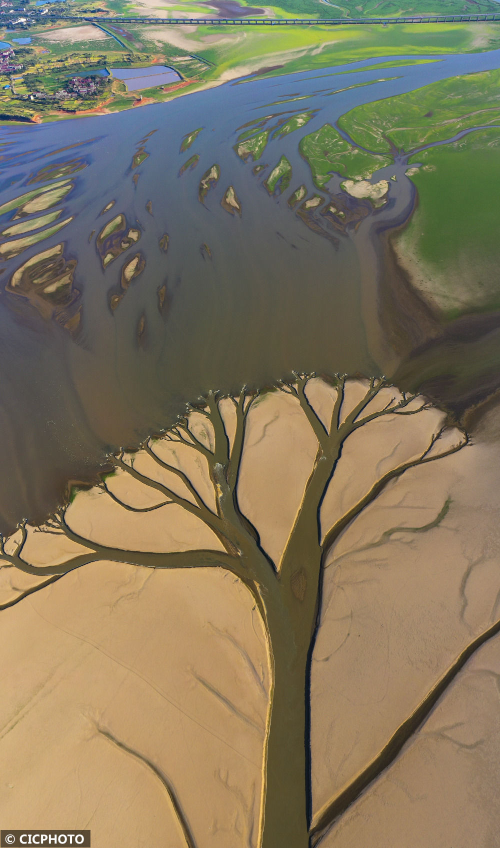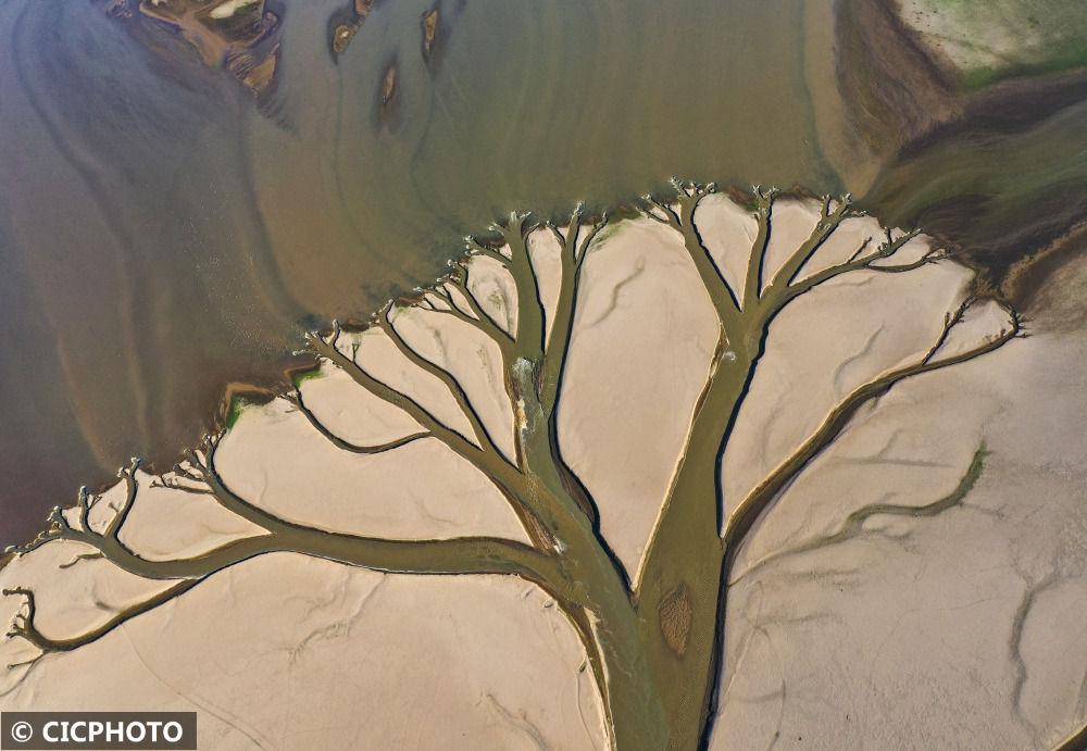 近期,受降水偏少及持续高温影响,长江流域出现罕见的旱情,鄱阳湖提前进入低枯水期,在鄱阳湖南昌进贤段水域出现栩栩如生的“大地之树”自然景观。