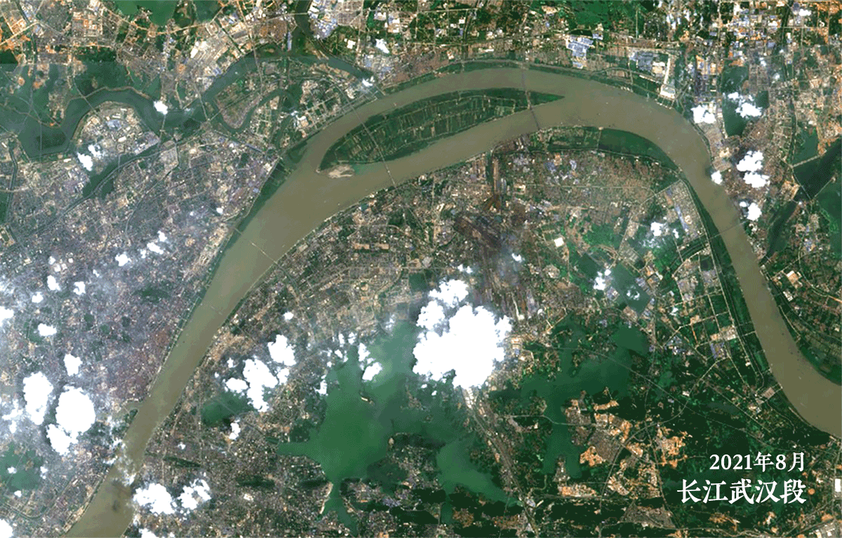 2021年8月和2022年8月拍摄的长江武汉段卫星影像对比。