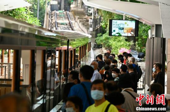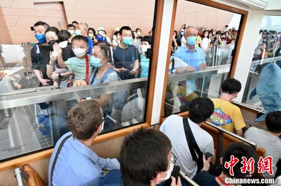 香港第六代山顶缆车升级启航 市民排队乘搭