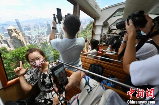 市民乘搭山顶缆车到山顶广场消费。(李志华 摄)
