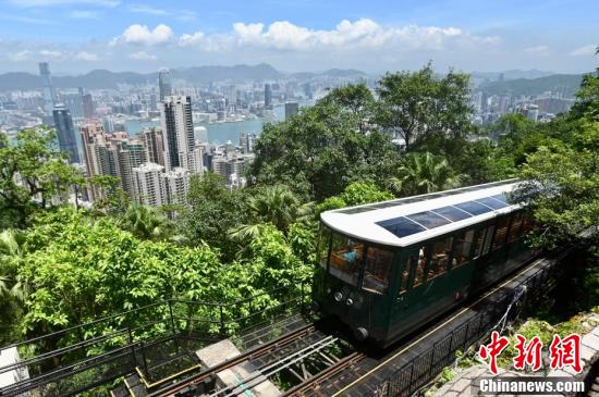 服务香港逾130年的山顶缆车,停运翻新超过一年。扩建后的第六代缆车于8月27日正式开放。当日,大批市民到中环缆车站乘坐新山顶缆车,并到山顶广场消遣。中环总站室内可容纳多达1300人。第六代缆车载客量较之前增加75%达210人,候车时间缩短逾7成。图为新山顶缆车与维港景色。