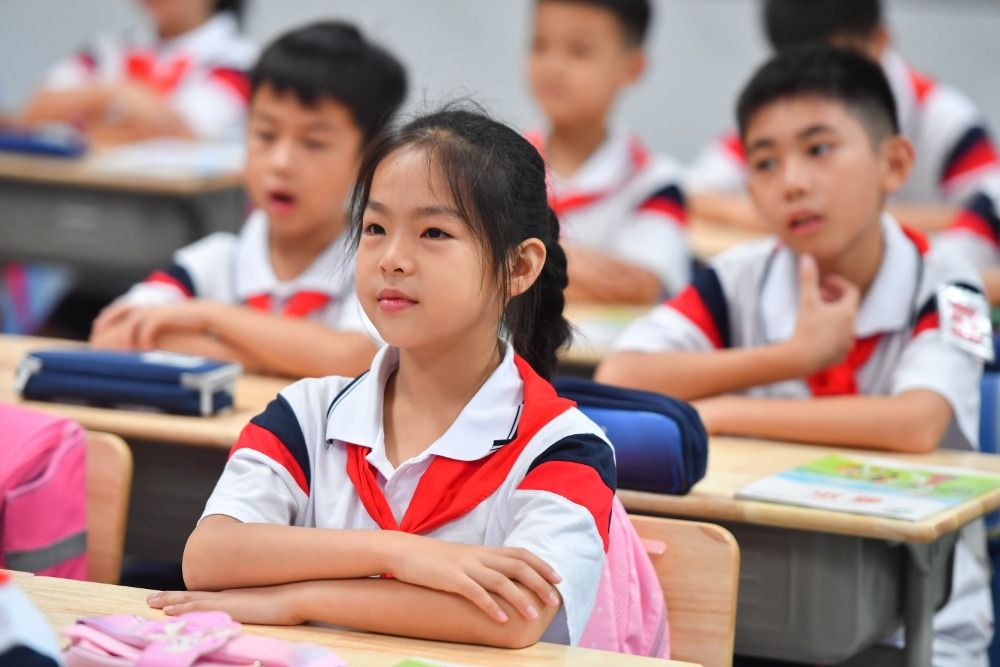 8月29日,在长沙市天心区青园南湖小学,学生在课上认真听讲。
