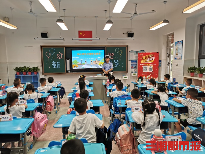 三湘都市报·新湖南客户端8月29日讯(全媒体记者 虢灿 实习生 罗晓仙)开学了!随着中小学开学,学校周边护学岗随之启动,交警、交通劝导员、志愿者等携手守护孩子们安全。不少交警走进校园,参加开学典礼,给孩子们上一堂交通安全教育课。湖南交警总队今日发布《给家长及学生的一封信》,倡议家长尽监护教育之责,孩子尽遵法守法之本。