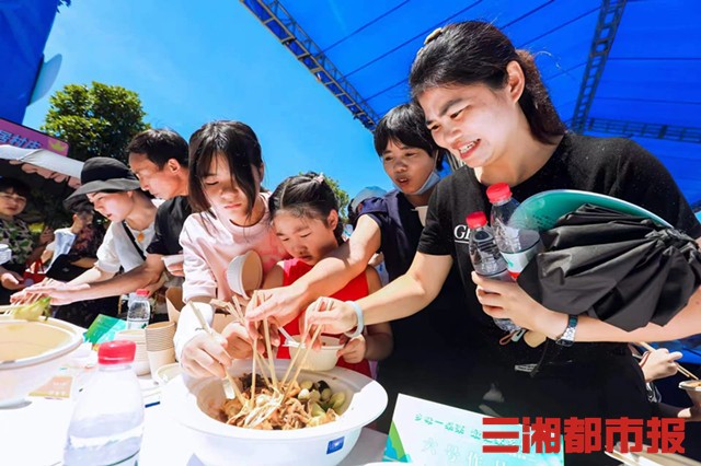 活动现场,还同步展示了湘江新区各种乡村特色文艺节目,并设有莲子、黄桃、韭黄、葡萄等7个特色农产品展示区,吸引了一大波当地群众和游客观看。“有吃有玩,还有这么多乡村美食的制作过程以及特色节目,带孩子过来体验下。”一名前来游玩的市民开心地说道。