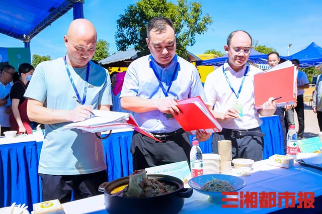 三湘都市报·新湖南客户端8月10日讯(文/图/视频 全媒体记者 胡锐 实习生 孙昕 通讯员 邓中华)切、剁、片、斩、拍……8月10日,一场以“湘味美食 鲜城湘江”为主题的乡村美食制作技能大赛精彩上演,来自湖南湘江新区7个涉农街镇的15名大厨现场“炫技”,现场烹制独家特色菜品。