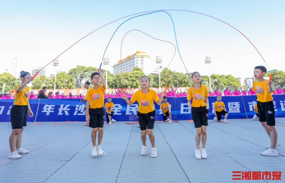 车轮跳、交互绳、绳中绳……8月7日,“全民动起来·一起向未来”2022年长沙市全民健身日展演暨市民运动技能挑战赛举行,来自长沙市高新区虹桥小学的20名小“绳”童,现场展演花样跳绳。