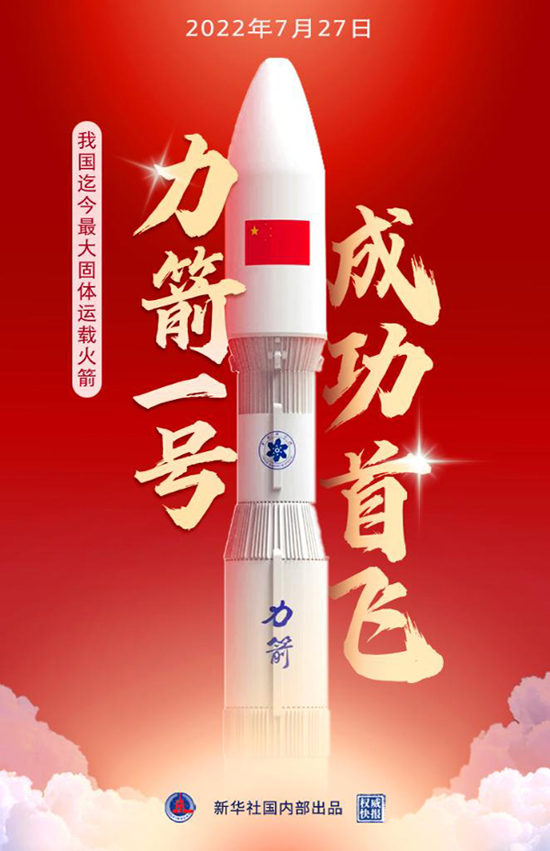 力箭一号运载火箭于2022年7月27日午间在酒泉卫星发射中心成功首飞