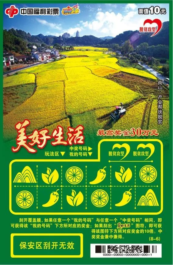 为充分展现邵阳脱贫攻坚建设成果,助力乡村振兴,中国福利彩票特推出了一款画面精美、主题鲜明、内容丰富的“脱贫攻坚”主题刮刮乐游戏——“美好生活”。