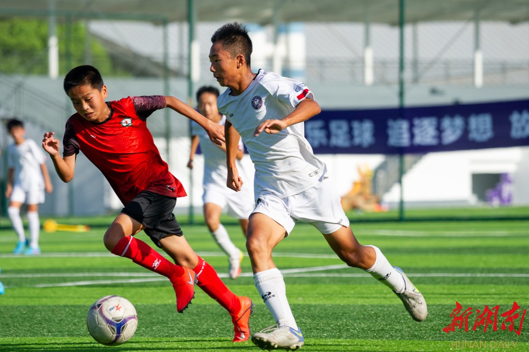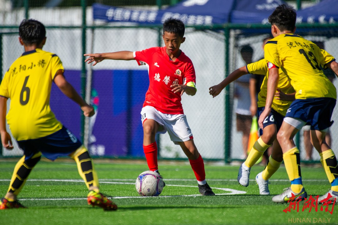 新湖南客户端8月6日讯(通讯员 永明 记者 胡旻 实习生 田邡靖)今天上午,2022年长沙市第十届全民健身节系列活动——铜锣湾·2022第七届“玛丽莱杯”青少年(U12)足球精英赛总决赛结束了1/4决赛的争夺。最终,沈阳小将天泽、重庆初心、大连东北路小将和广州铭途战胜各自对手,成功挺进四强,湖南两支队伍长沙德馨园小学和湖南奥星遗憾无缘四强。