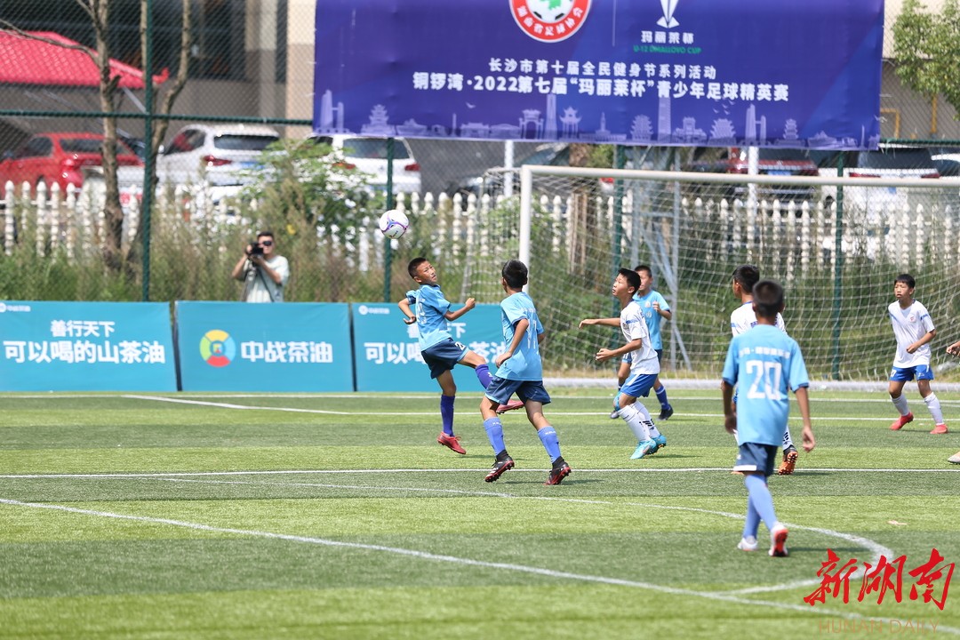新湖南客户端8月2日讯(通讯员 永明 记者 胡旻 实习生 田邡靖)8月2日上午,2022年长沙市第十届全民健身节系列活动——铜锣湾·2022第七届“玛丽莱杯”青少年(U12)足球精英赛在湖南省网球足球运动管理中心足球场开赛,揭幕赛A、D小组进行了首轮比赛的争夺。湖南奥星由吴鑫浩上演“大四喜”、刘昊和曾梓豪各下两城,最终,湖南奥星以6:0战胜福建宸润白水洋;长沙德馨园小学由龙子轩率先破门,最终1:1战平贵州实验小学。两支湖南球队首战1胜1平,开局实现“开门红”!