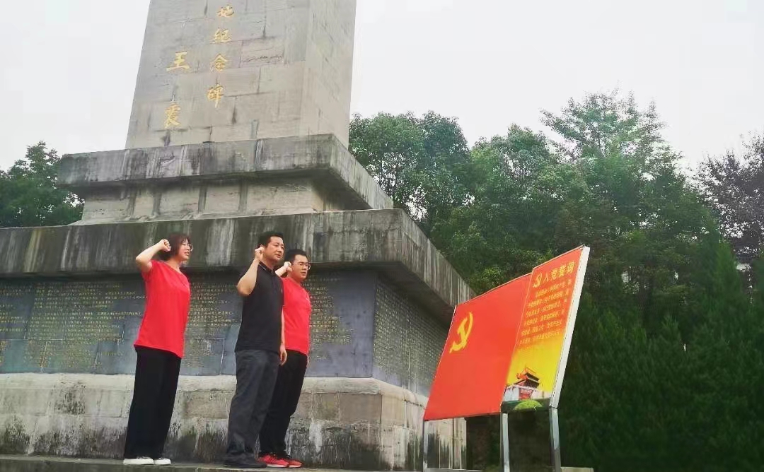 (在中国工农红军第二方面军长征出发地纪念碑下重温入党誓词)