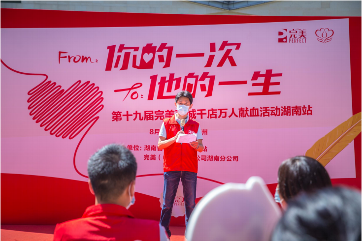 你的一次,他的一生!8月27日,由完美(中国)有限公司湖南分公司与郴州市中心血站联合举办的“第十九届完美百城千店万人献血活动郴州站”在郴州新成广场正式启动。