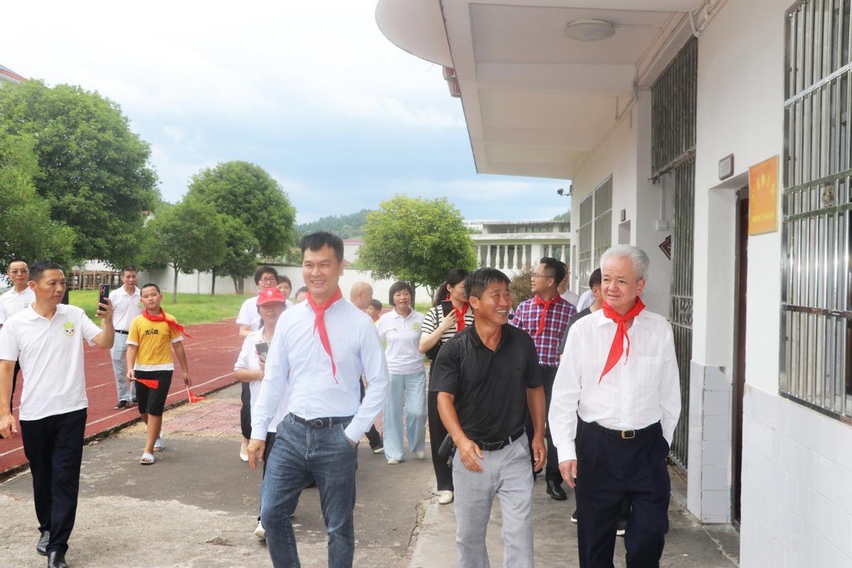 相隔多年再次回访,相比当年仅有的砖瓦教室,如今学校已建成教学楼、功能楼、塑胶跑道、篮球场、足球场……处处焕发着新时代的红色光芒,古董事长内心的喜悦难以言表,正所谓“千里来寻故地,旧貌变新颜”!