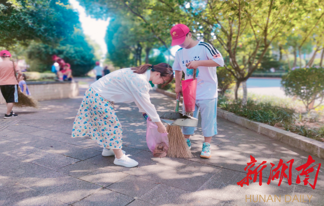 湖南日报·新湖南客户端8月6日讯(通讯员 栗稳)今天上午8时30分,家住长沙县泉塘街道泉睿社区中国铁建城小区的小朋友万雨琪、毛雨荣,戴着小红帽、红袖章在小区内清理绿化带垃圾。