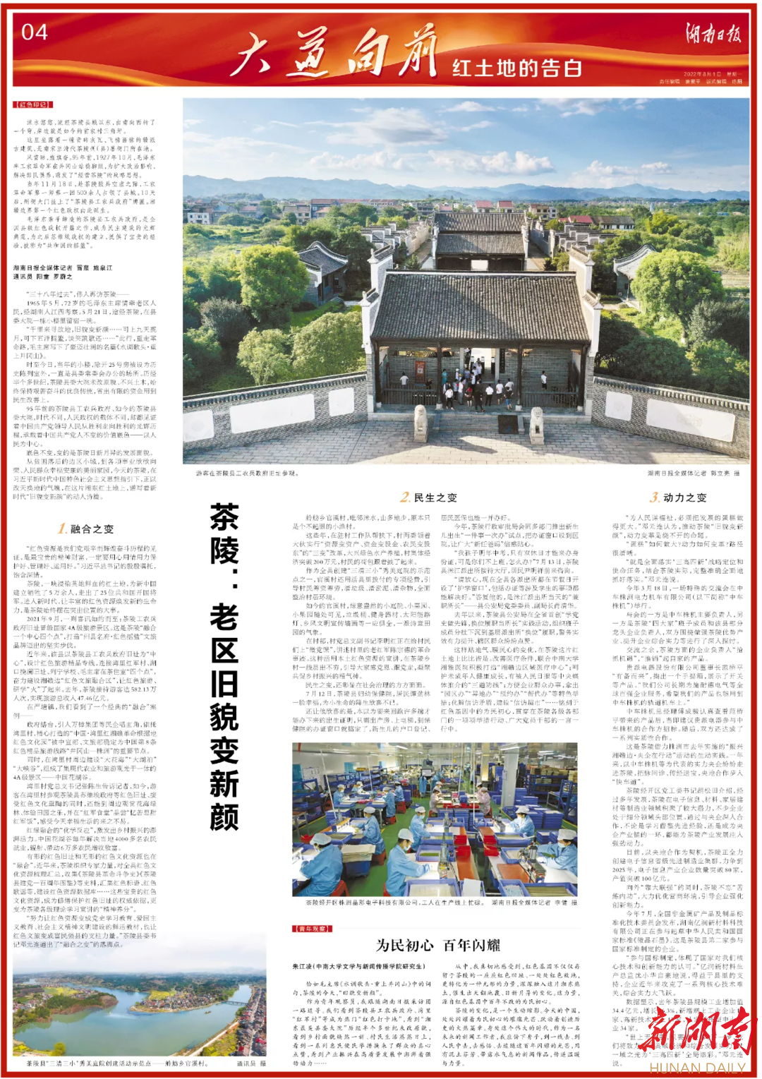 从中,我真切地感受到,红色基因不仅仅存留于茶陵的一座座红色旧址、一处处红色故地,更转化为一种无形的力量,深深融入这片湘东热土,催生出天翻地覆、日新月异的变化。这力量,源自红色基因中百年不改的为民初心。