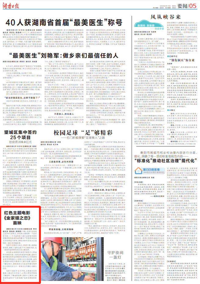 湖南日报8月18日讯(全媒体记者 邢玲 通讯员 曹海清 周青霞)今晚,电影《金家堤之恋》举行首映式。该电影以湖南第一个农村党支部——中共益阳县兰溪乡金家堤支部的创建者欧阳笛渔和益阳籍无产阶级革命家高文华的事迹为原型,展现1924年初发生在益阳的一段红色党建故事。