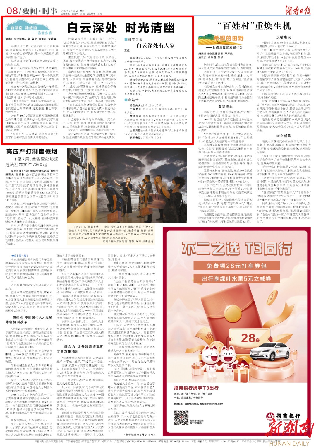 甘甜冷冽的山泉,养育着山腰上的中国传统村落白云山村和山脚土家族发源地首八峒村。青石板、红栏杆、绿竹林……外面的世界很精彩,这里的时光不紧不慢。