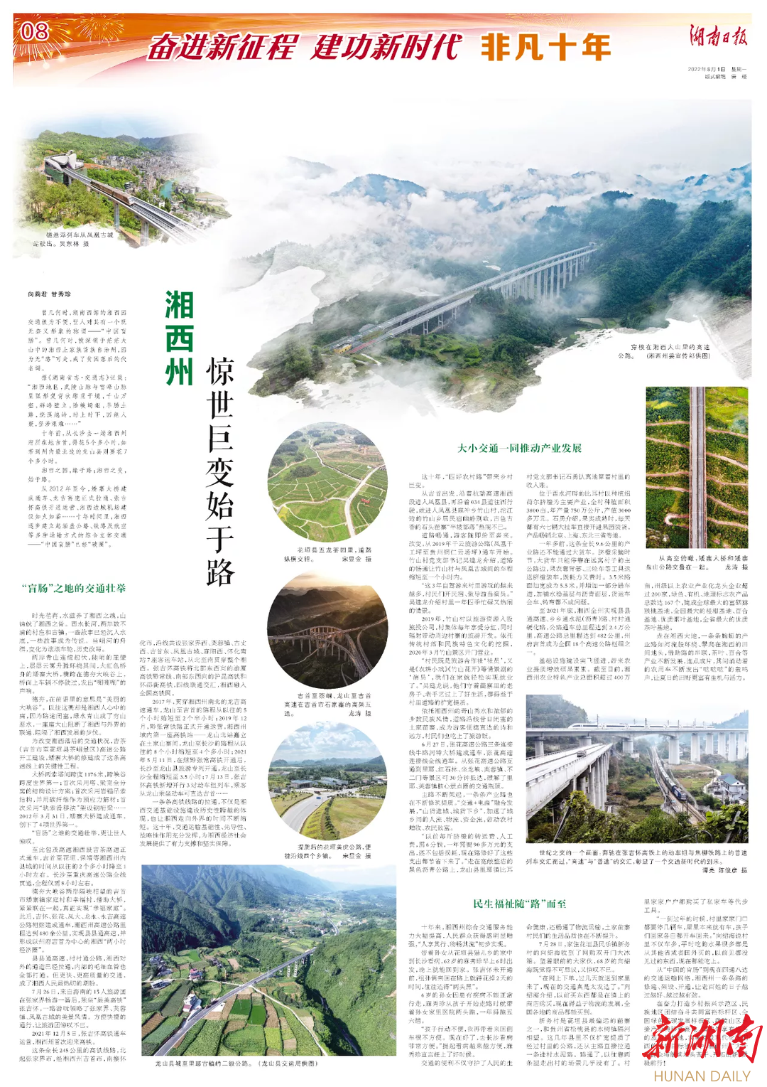 从“中国的盲肠”到现在四通八达的交通运输网络,湘西州一条条路的修建、架设、开通,让老百姓的日子越过越好、越过越有劲。