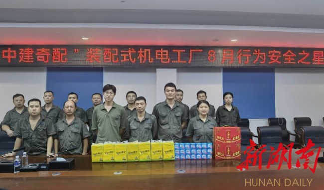 湖南日报·新湖南客户端8月23日讯(通讯员 杨伟 周业树)8月22日,湖南中建奇配科技有限公司沅陵工厂组织召开8月份月度安全生产培训会暨“安全行为之星”表彰会。“安全行为之星”表彰活动的常态化开展旨在奖励先进,树立标杆,营造良好的安全氛围,促进安全生产长效机制。