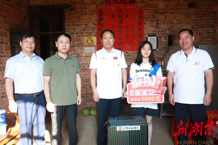 湖南日报·新湖南客户端8月24日讯(通讯员 王 辉 梁 媛)8月24日,江华瑶族自治县县委书记段贵建到该县大路铺镇八百美村看望慰问受资助困难大学新生,江华县委常委、县委办主任杨敏以及江华教育局、团县委、关工委、江华农商银行、大路铺镇等有关单位负责人一同走访。