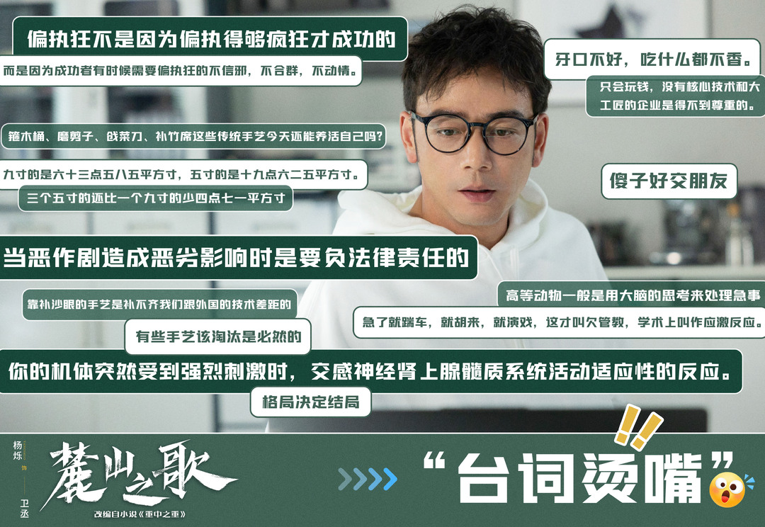 由毛卫宁任总导演、王成刚编剧、张彤导演,杨烁、侯勇、焦俊艳、颖儿、夏德俊主演的重工人时代筑梦剧《麓山之歌》正在CCTV-1和芒果TV热播,杨烁饰演的“科学怪咖”卫丞打破了人们对科研人员的传统认知。
