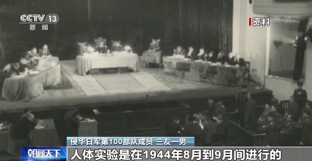 侵华日军第100部队成员 三友一男:人体实验是在1944年8月到9月间进行的。实验目的是如何在本人不知道的情况下给他们使用麻醉药,重点是将细菌也用到被实验者身上,被用于实验的有7到8名中国人和苏联人,是把这些药物混在香烟、菜汤、点心、鸡蛋、酒等这些食物中给被实验者的,这些被实验者在实验两周后会十分瘦弱,再也无法被用于实验。