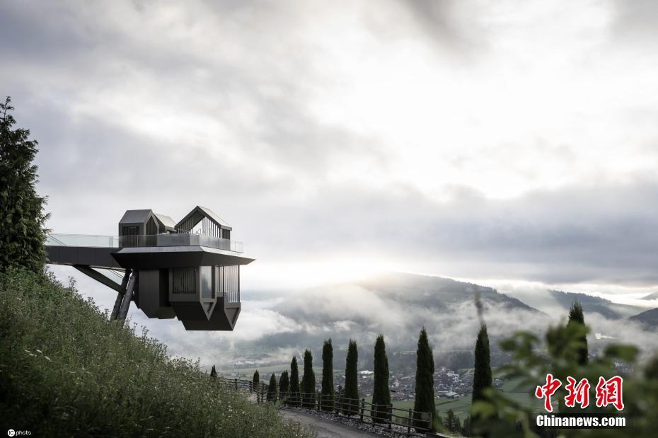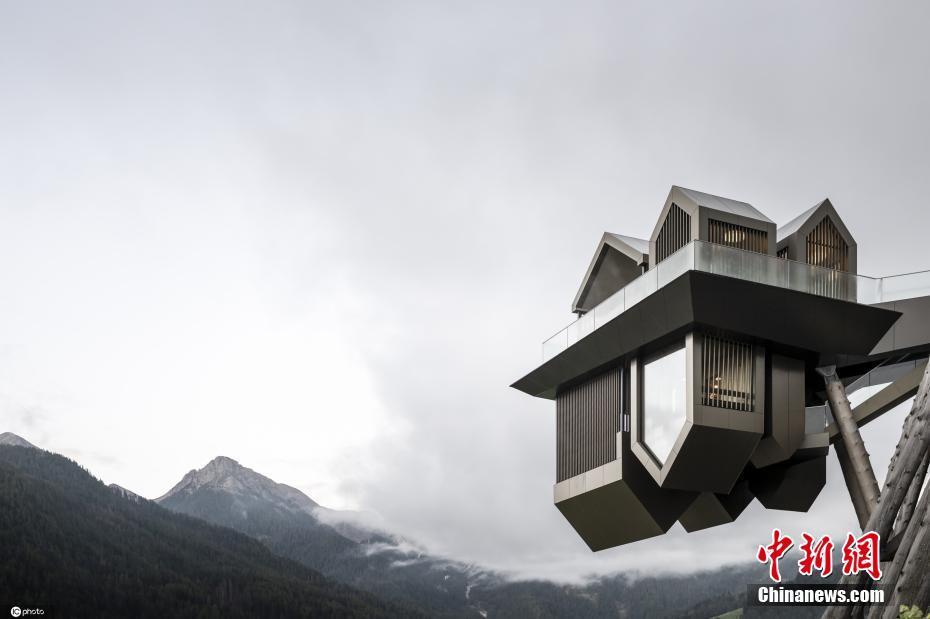 9月21日报道(具体拍摄时间不详),一家新兴设计公司对意大利Olang的Hubertus酒店进行了扩建。酒店的扩建部分有上下两层,上层是一个可以容纳数十人的平台空间,下层则是180度旋转的空间,木屋如同被倒挂起来,非常有设计感。图片来源:ICphoto