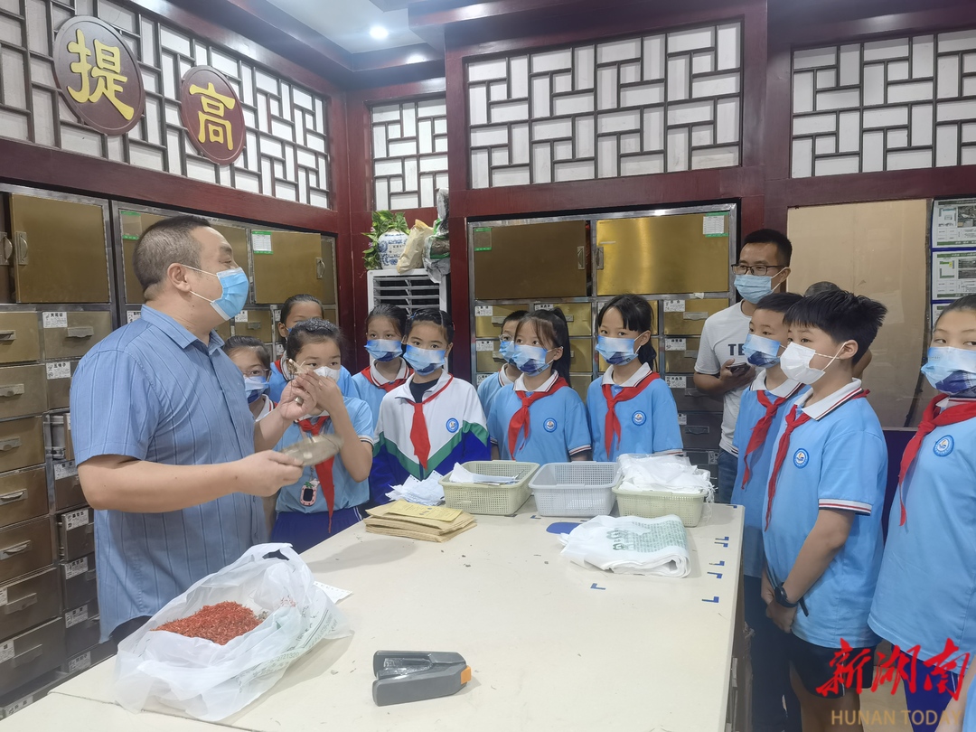 讲座结束后,城区三小组织10余名学生来到医院国医堂、中药房、膏方室、煎药房等地参观。邵东市中医医院药剂科科长唐超进行现场讲解,并将常见中药饮片、药包,还有艾灸盒、拔罐器等实物呈现出来,让同学们在实践中学习到了中医药知识,感受了中医药文化的独特魅力。
