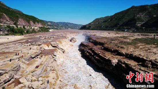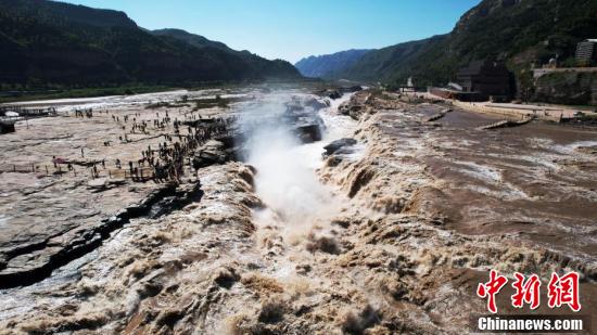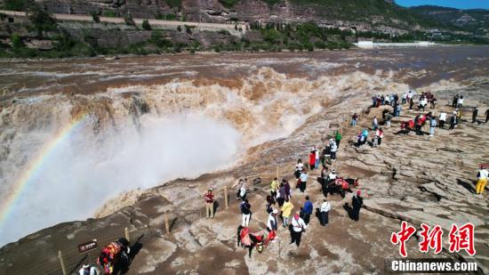 从空中俯瞰,只见汹涌澎湃的黄河水奔流而下,落入十里龙漕,激起阵阵水雾,形成水底冒烟、谷涧起雷、群龙戏浪、彩虹通天等奇特景观,犹如千军万马呼啸而来,呈现出一幅黄河之水天上来、奔流到海不复回的壮美画卷,吸引了不少游客前来驻足观看、拍照留念。 张辉 摄