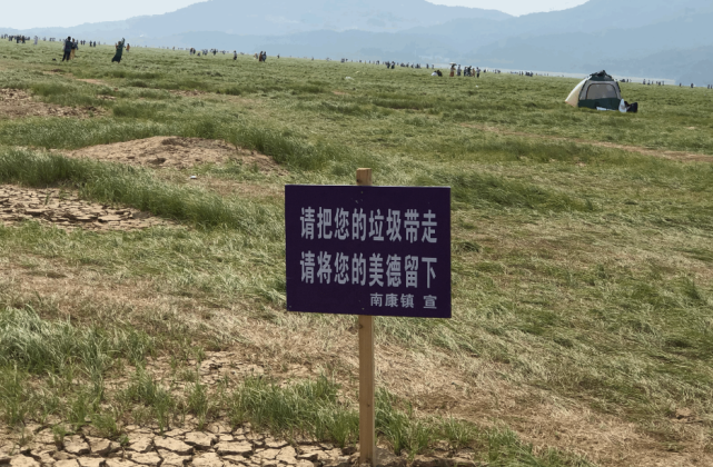 而在9月下旬,从堤坝往湖中看去,目光所及,只能看到一条小小的河流,其余空旷的地方长满了野草,近岸边的草甚至已经枯黄发脆。