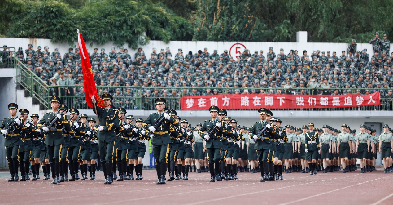 9月18日上午,南华大学2022级新生军训成果汇报暨总结表彰大会在北校田径场举行,9500余名新生完成了14天的训练,身着军装接受检阅。