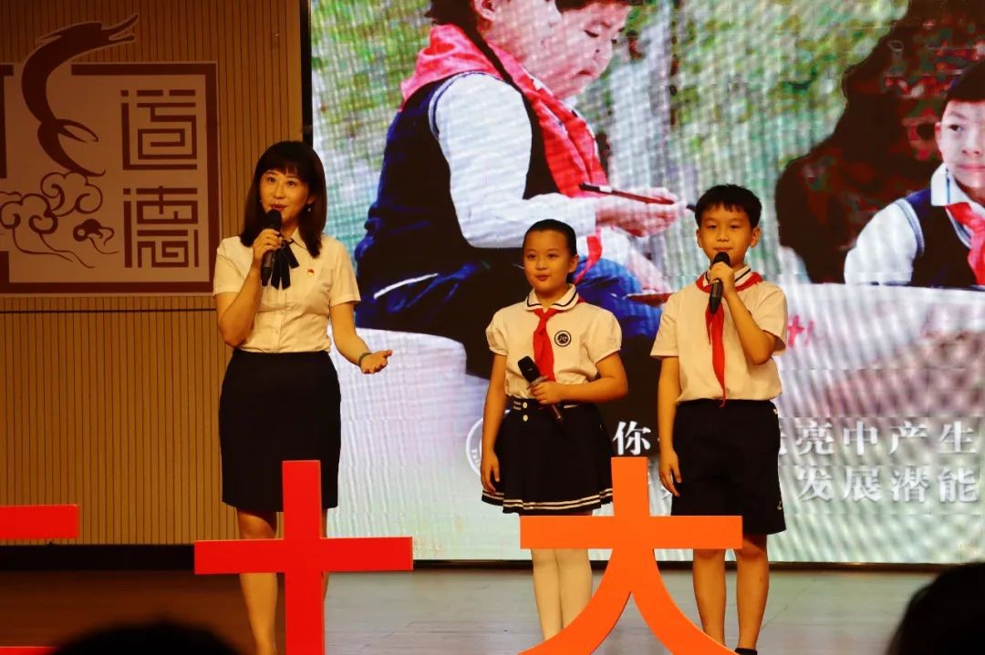 欧蓉牵手两名学生代表,在舞台上温暖对话,用这种特殊的方式,深情寄语新学期。“愿你们从光亮中生长幸福,热爱生命,热爱生活,热爱一切美好事物”。这饱含深情的言语正是孩子们的成长宣言---做向上向善的中国好少年。