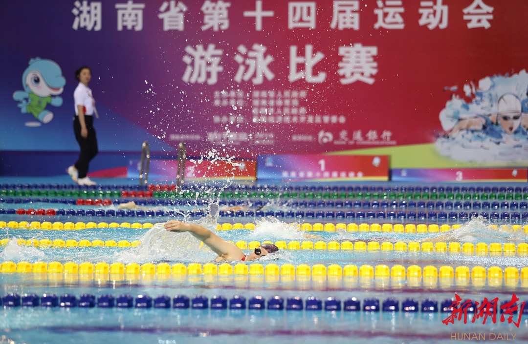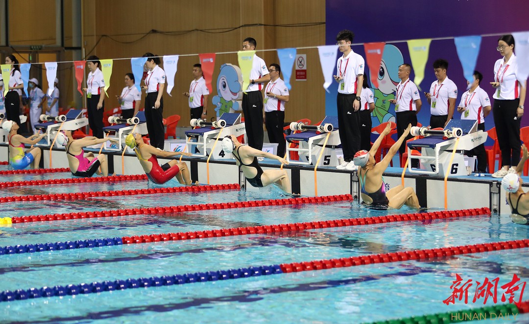 为期两天的比赛中,参赛选手们在泳池里劈波斩浪、你追我赶,在现场观众大声的加油鼓劲中乘风破浪、“泳”往直前,比赛现场热火朝天。