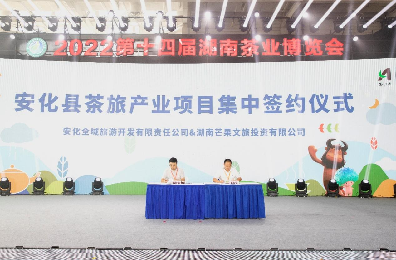为推动乡村振兴战略,在发布会上还举行了安化县茶旅产业项目集中签约仪式,8家企业分别签订的投资协议和采购协议总金额达8亿元,安化茶旅文化健康产业融合发展掀起了新一轮浪潮。