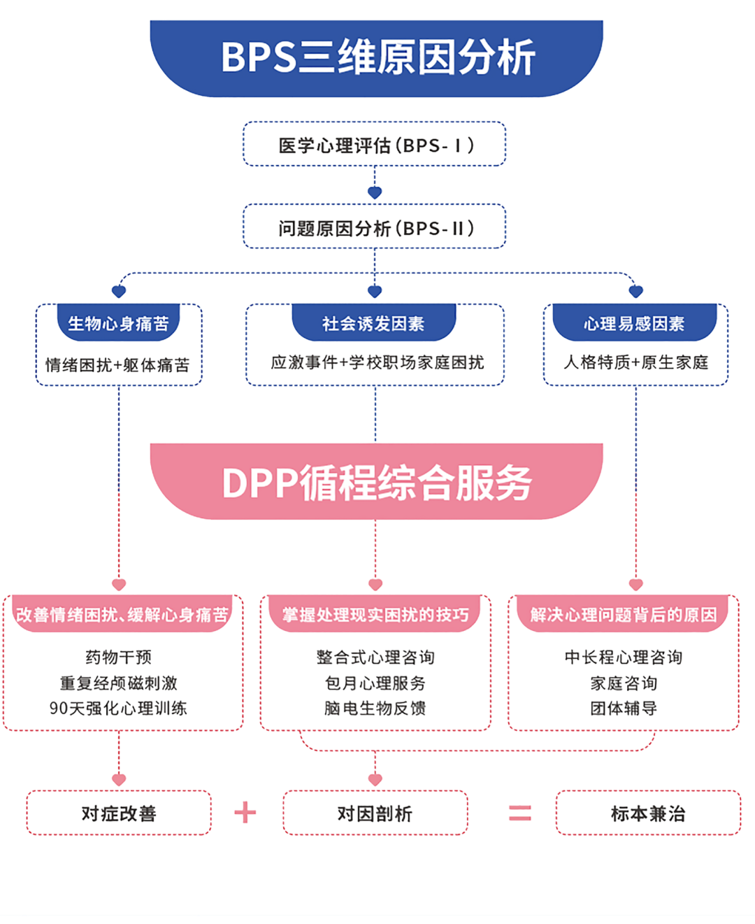 这个综合服务方案,基于安肯BPS-DPP循程诊疗的服务理念制定,是一种对症改善+对因剖析的标本兼治服务。