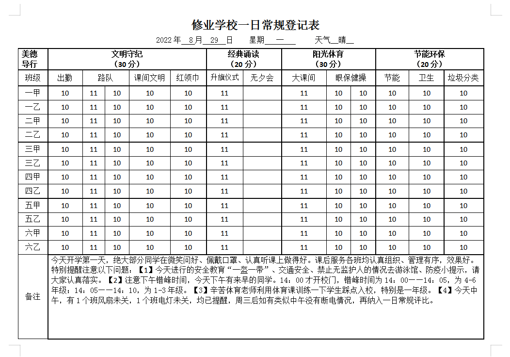 学校行政轮流值班巡视检查,扎实推进“一日常规评比”和反馈,每周行政会、每月学科组长/班主任会/每季度党员大会,每学期家长会,凝聚共识,共同推进文明建设工作。