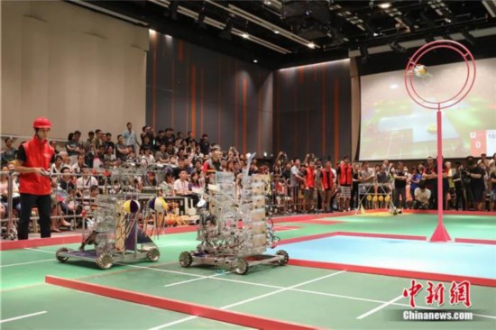 在香港科学园举行的“全港大专生机械人大赛”。中新社记者谢光磊 摄